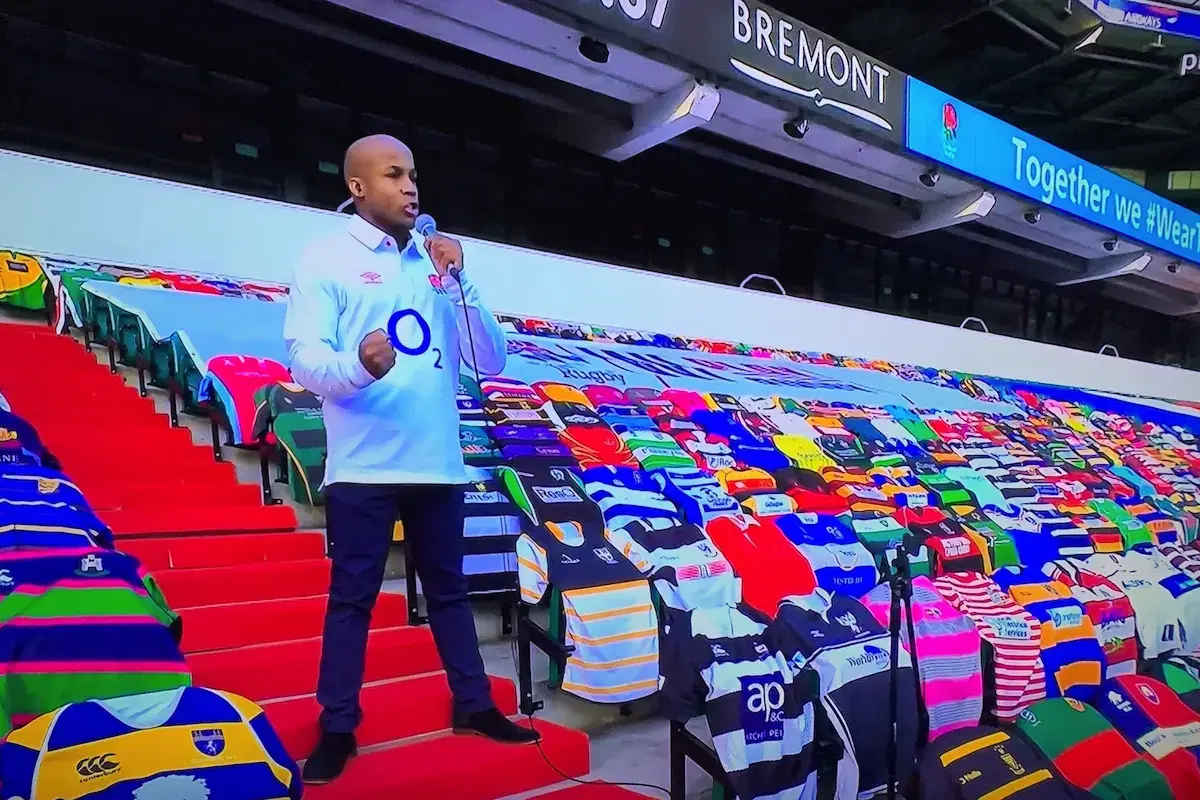 Over 600 clubs sent shirts in and it was great to see The Harrogate Pythons RUFC shirt on The TV during the anthems together with our close North Yorkshire neighbours Ripon RUFC in shot too . . .