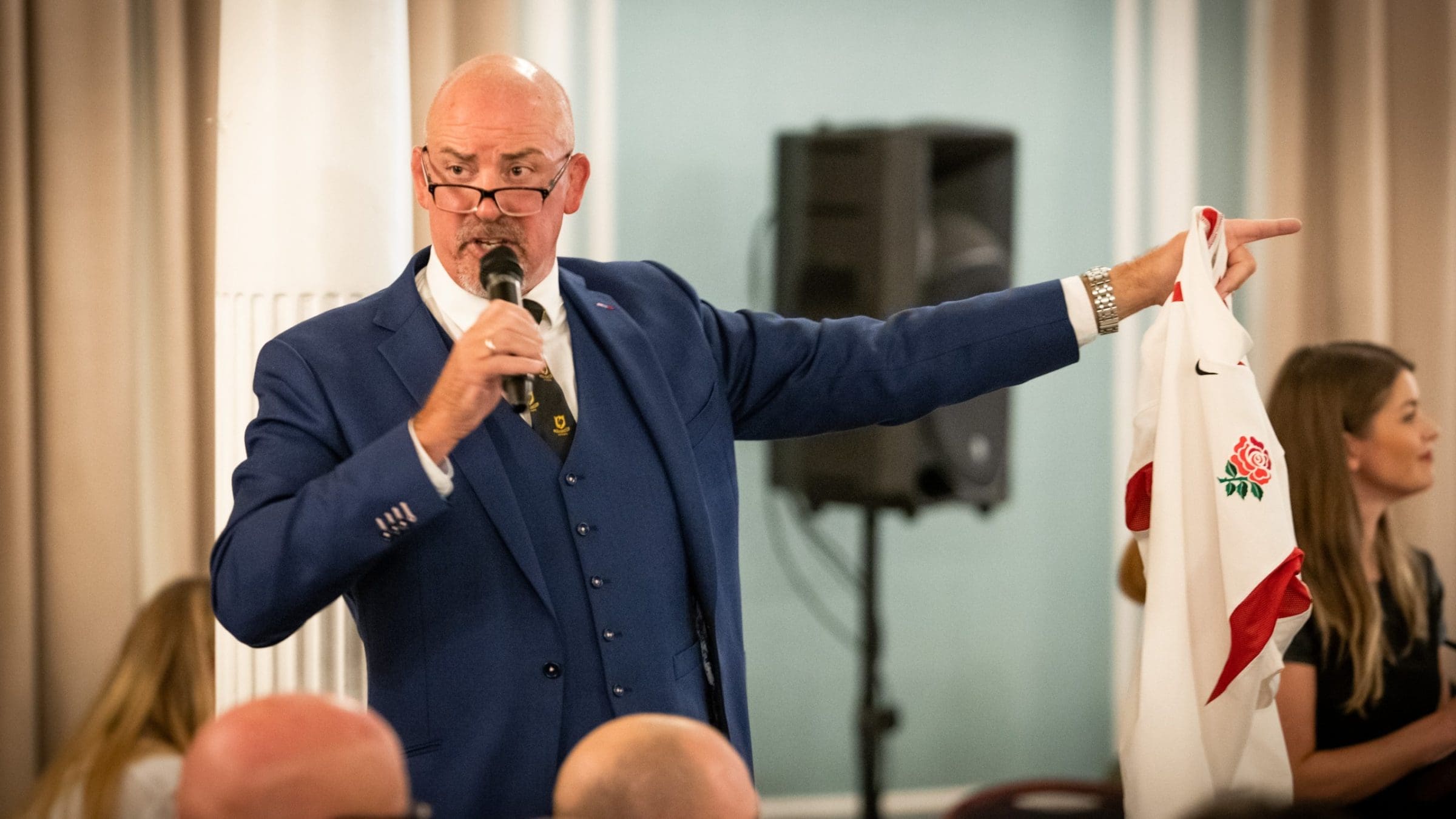Simon Shaw was the first to speak.  He spoke of his early days of club rugby with the inevitable ‘one liners’ keeping the attentive guests amused.  He then went on to cover how his International Career had been affected by a varied disciplinary record with some great stories regarding his opponents and referees.