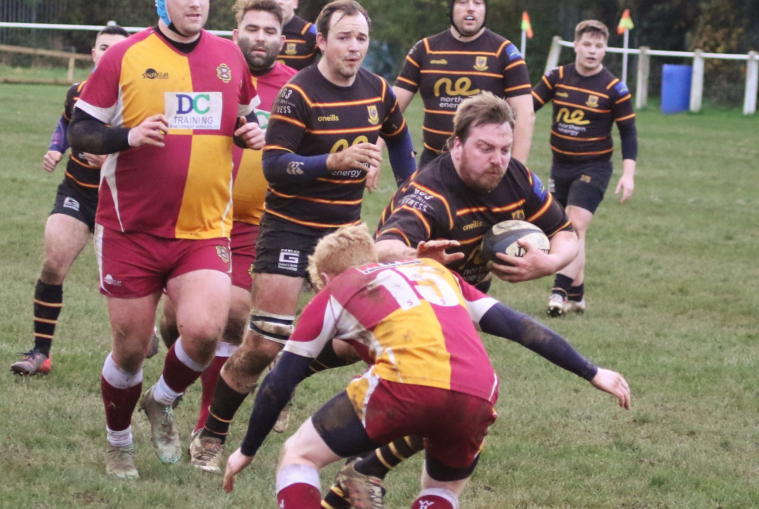 Dan Bird’s men keep the pressure on Wensleydale with their 11th consecutive win at Wheatley Hills.  The early exchanges set the scene for a tough fixture with Hills giving an early penalty away for a high tackle.  Jed Carr drills the penalty kick into the corner, Calum Brock secures the line out for Matt Leach to control his drive perfectly to touch down.  Carr with the extras, 0-7 on 5mins.  Phases were evenly matched as Hills gained ground with some slick ball movement and touch down under the posts, 7-7 on 15mins.