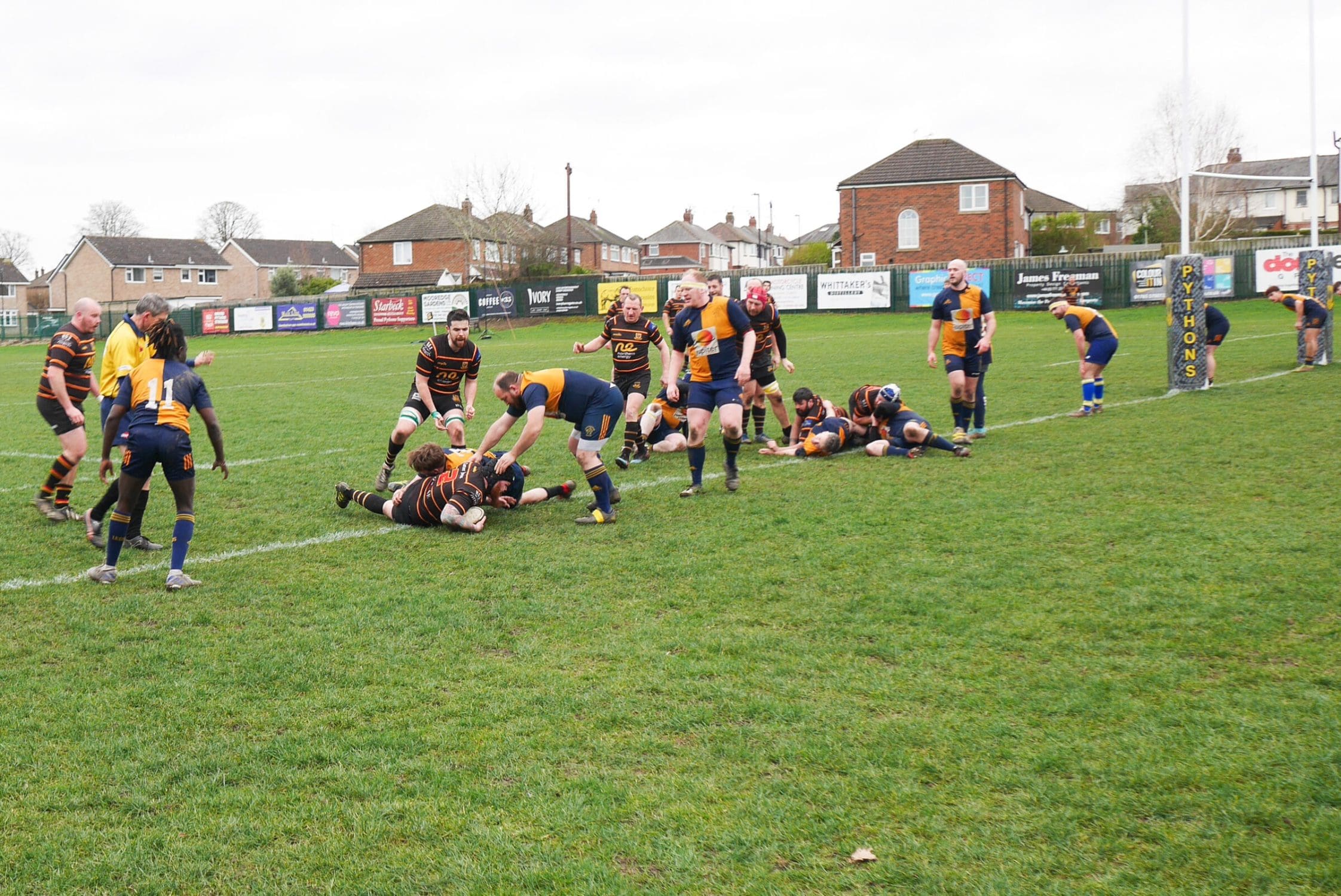 After Ilkley dropped out earlier in the week, the Pirates were grateful to Leo’s who agreed to travel to JSG for this fixture. With Si Womesley agreeing to dig out his boots and Eddy being commandeered on the touchline after turning up to watch the Pirates had a decent squad of 18. Leo’s showed good intent early on as a Pirates kick was returned with interest, but Nathan Kemeny covered across well to snuff out the early danger. Leo’s pressed again and Rodders had to leave the field with a hand injury to be replaced by Tayls at prop. Leo’s continued to press, and from a 5m scrum the Leo’s No8 picked up and drove over. 0-5 12 mins. Worse was to follow for the Pirates as Leo’s broke from their own 22 and a well-timed pass put the winger over in the corner. 0-12 22 mins. A turnover by Sam Fulton and some strong running from Ryan, Eddy and Ben Spratt put the Pirates back on the front foot. An accurate touch find from a Matt Audsley penalty pinned Leo’s on their own line and despite some ferocious Leo’s defence, Sean Glasswell powered over from short range. 5-12 29 mins.
