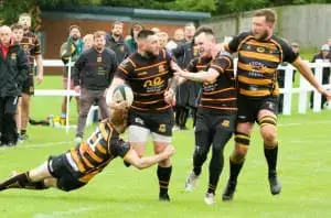 The first quarter of the second half was evenly contested between the 22m lines. The Pythons lose a scrum against the head and 2 phases later the Dale centre crashes over the line, 17-19 on 50mins. Responding to the change in the lead, Hugh Tatlow and Ed Challis carry hard through the middle. Carr send Sam Beagrie on his way, he floats a pass to Parrish who is held up agonisingly short. Clough digs the ball out from the breakdown and whips a pass to Sam Rowntree to power over the line next to the posts, 24-19 on 70 mins.