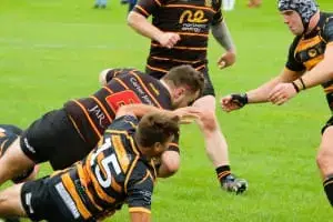 Dale come back hard and The Pythons need to defend. Dale win a line out on the home 5m line and their well practiced catch and drive is successful again, 24-26 on 75 mins. Desperate defence gives Dale a penalty in front of the posts and The Pythons a yellow card, 24-29 with minutes left.