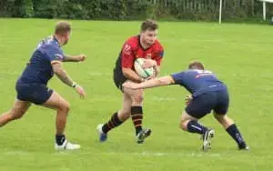 The game started with slick exchanges from both sides. Sam Considine found space out wide to out pace the West Leeds defence and opened the scoring in the corner. 0-5 on 8mins. The Pythons pack took control of the set scrums and set phases in mid field with Ed Challis and Sam Rowntree gaining valuable yards. Each side took their own ball in the line outs, West Leeds set up a driving maul, went through 2 phases before spinning the ball wide for the winger to touch down in the corner, 5-5 on 15mins. Using width once more West Leeds added to their score 5-12 on 20 mins. The home team’s next try saw raw pace round the Pythons’ defence to score under the posts, 5-19 on 25mins.