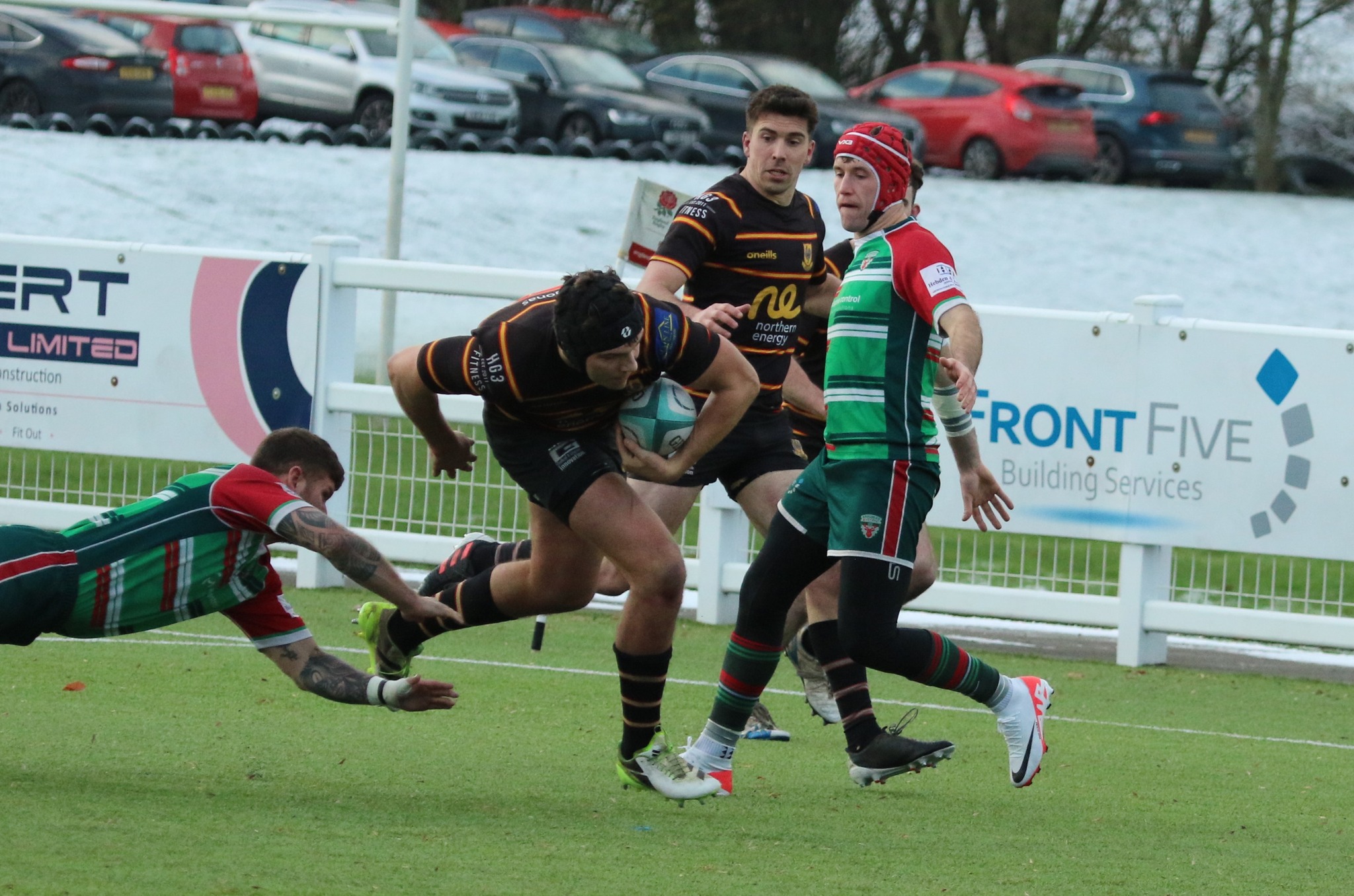Harrogate Pythons travelled to Keighley’s artificial pitch for the first ever league fixture between the clubs.  Keighley are unbeaten at home for 4 seasons on their huge 4G pitch supplied by The RFU in 2018.  The first half was an evenly contested match with both sides needing a well structured defence to hold back determined charges from both packs.  The deadlock was broken by the home side with a well worked move creating space out wide for the winger to touch down in the corner, 5-0 after 30 mins.
