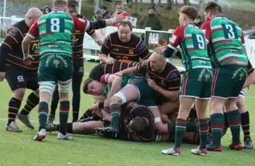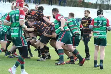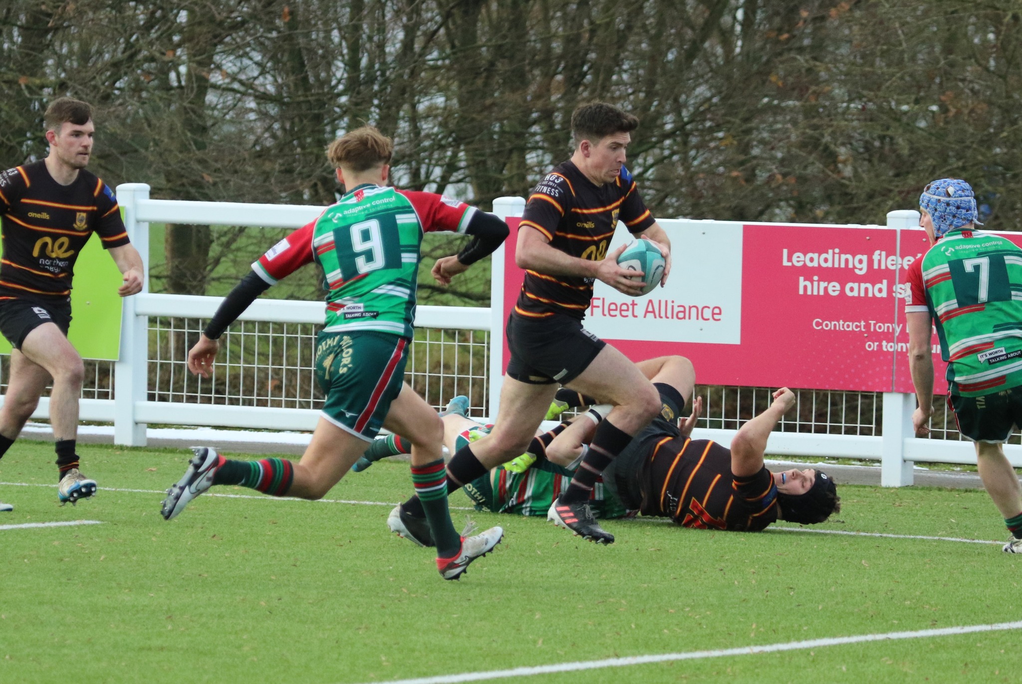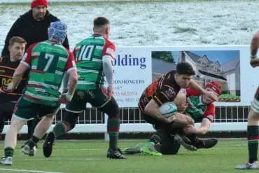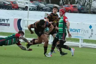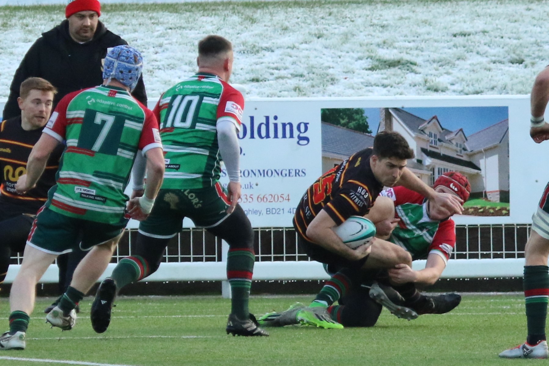 The Pythons responded with powerful runs from Ed Challis, George Booth and debutant Pete Millward but spilled passes and poor ball retention kept them out.  Following a period of intense pressure, quick ball from a Tom Stabler-Langan run found Hugh Tatlow powering down the touchline.  10m out he managed to off load in the tackle to supporting Max Sharp to touch down in the corner, 5-5 on 38 mins.  Keighley slotted a penalty just before half time 8-5.