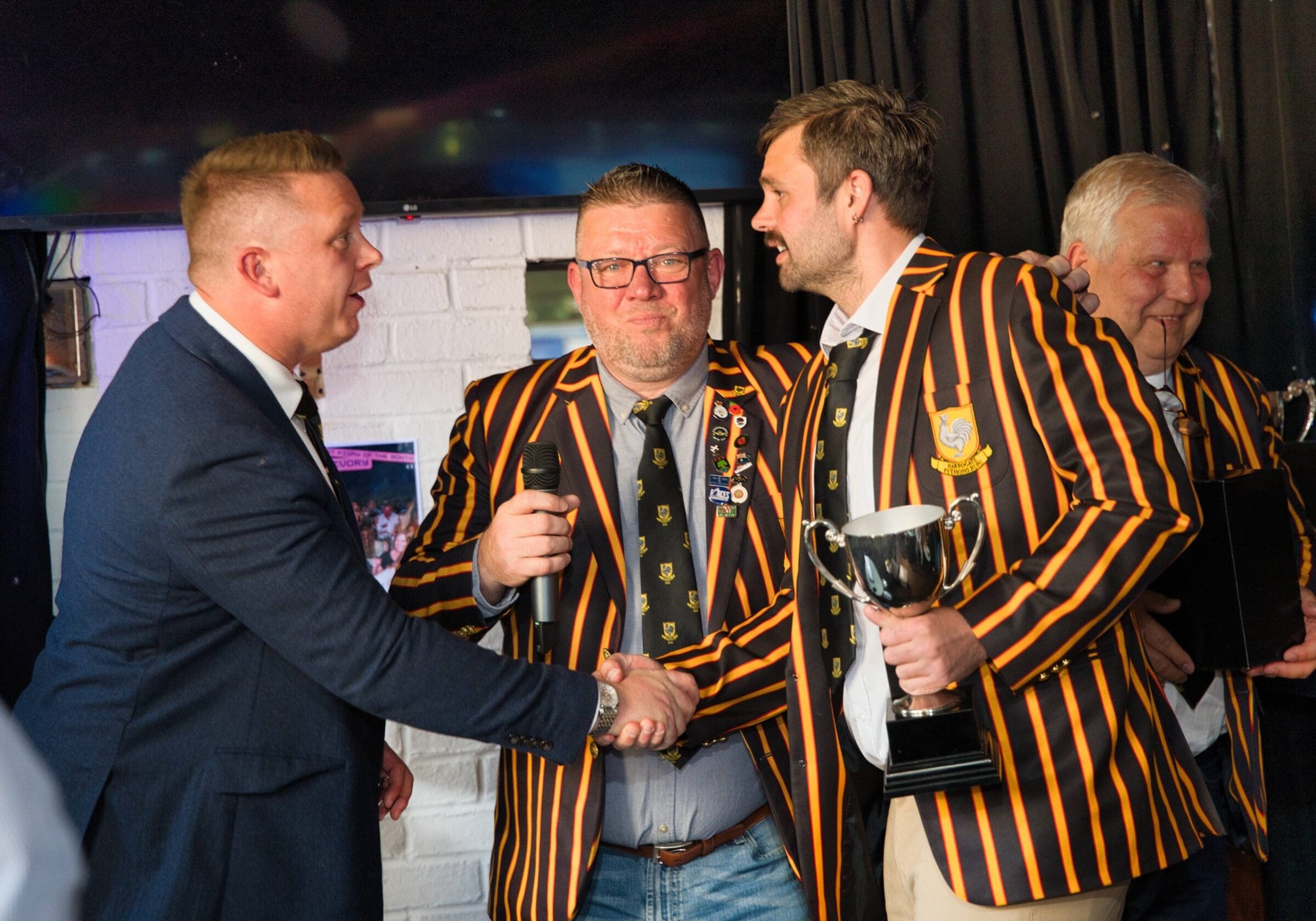 The 23/24 season’s awards for Harrogate Pythons took place at The Ivory Bar in Harrogate. The afternoon began with Coach Bird confirming that The Pythons’ 1st XV will remain in Yorkshire 1 for the 24/25 season. Despite finishing 2nd bottom the demise of Jersey Reds from The Championship triggered a complex formula affecting leagues below them. Bird commented, “Our 1st XV performance wasn’t representative of our season’s performances. We gained 5 loosing bonus points, that is finishing within 7 points or less of our opposition. With just 3 of those as wins we’d have finished just about mid table. All the players should be congratulated on playing at this level,” He reviewed the 2nd XV performance and thanked team mangers Mark ‘Fortress’ Wilkinson and Al Brown for their efforts putting out a competitive side for each league fixture, “It’s the strength of The Pirates that supported our club. 14 players transitioned from our 2’s into the 1st XV at some point in the season, what an effort”, he concluded.