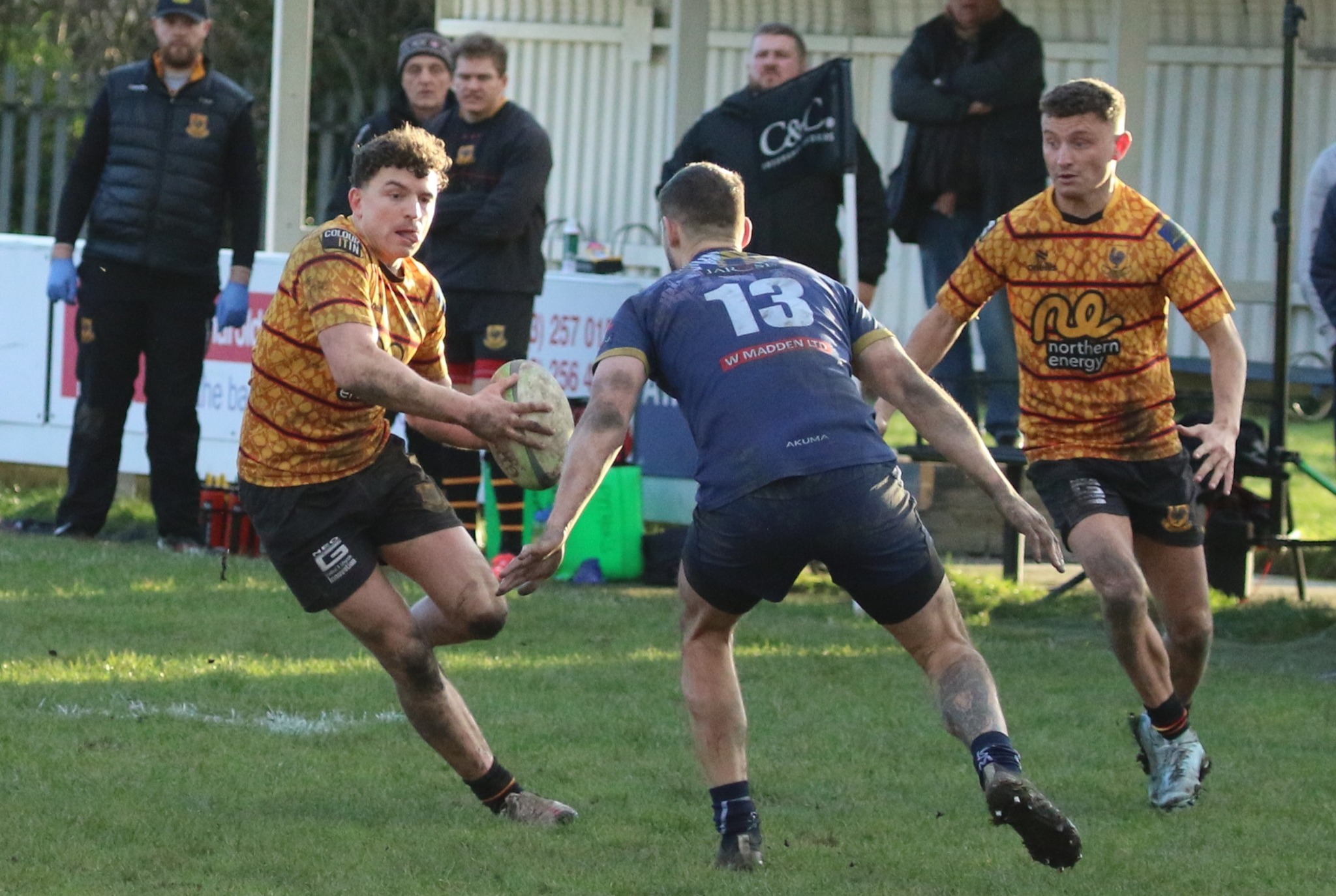 West Leeds persist in giving away penalties as The Pythons get closer. Finally Pryor is in range, 19-22 with minutes left. Once again the home defence gives away a penalty and a yellow card close to their line as Barclay and Whiting link well together. Step up Pryor, 19-22. West Leeds throw everything into the remaining few minutes. Superb tackling from the whole Pythons defensive line leads to some frustration in the home forwards on the Pythons’ line. Sharp takes the penalty and kicks the ball dead, full time.