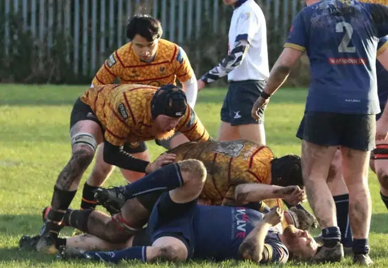 The Pythons receive a second yellow card as the second half begin and the home side take advantage of a 13 man opposition. The inevitable overlaps lead to three home tries taking the score to 19-14. Back to full strength The Pythons Jack Thompson-Hall and Adshead dominate the next phases with some challenging runs. Natsuki Barclay, on debut, release Harry Brayshaw who rounds the opposition at pace only to pulled down on half way. Leeds give a penalty away and Sharp drills the ball to half way. Tatlow wins the line out and the resulting drive takes play in the home 22. Barclay floats a perfectly weighted pass to Marcus Fotherby who is stopped inches short. Booth charges forward but again is halted just short. The ever alert Thompson-Hall spots an opening and burrows through to score, 19-19.