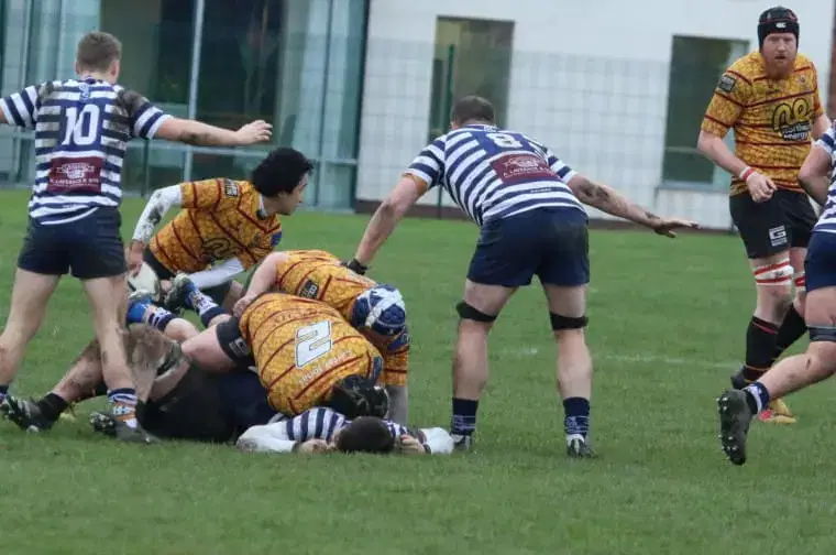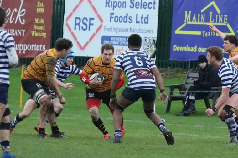 Harry Brayshaw takes a quick throw in to Barclay who makes good ground, back to Brayshaw who rounds the winger, kicks ahead and is downed by a late tackle. Yellow card for Pock and Max Sharp hits the 5m line with the penalty. Secure ball from Tatlow, Sam Rowntree is held up short, Jodan Payne stopped at the base of the post. Quick ball from Barclay to Pryor with a long pass to Adshead who rounds his winger to carry over a would be tackler to score his second. Pryor adds the extras, 17-7. Pocklington score a try and a penalty, 17-15 half time.