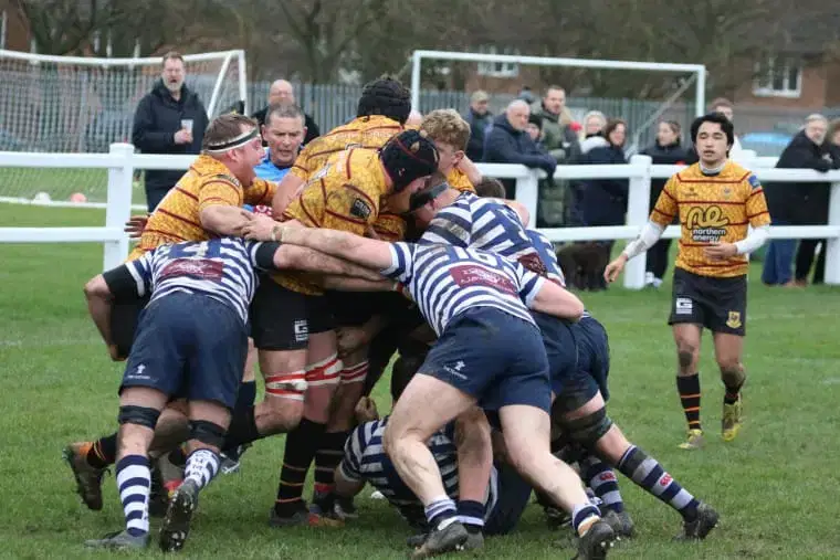 Pocklington visited The Jim Saynor Ground with only 2 league defeats both against leaders North Ribblesdale. The Pythons had the better of early exchanges. A kick ahead from the away team gave their pacey winger a race against the home defence which the winger narrowly won, 0-7 after 10 minutes. The Pythons responded well with Hugh Tatlow dominating the line outs, secure ball was spun wide by Natsuki Barclay, starting at 9, to Jack Thompson-Hall who released Saul Adshead. Rounding one defender, Adshead uses a deft chip to beat the last defender with Ben Pryor adding the extras, 7-7 after 15 minutes. Tatlow leads his pack back to Pock’s line to pile the pressure back on. In desperation Pock give away a penalty and a Pryor pen gives The Pythons the lead, 10-7.