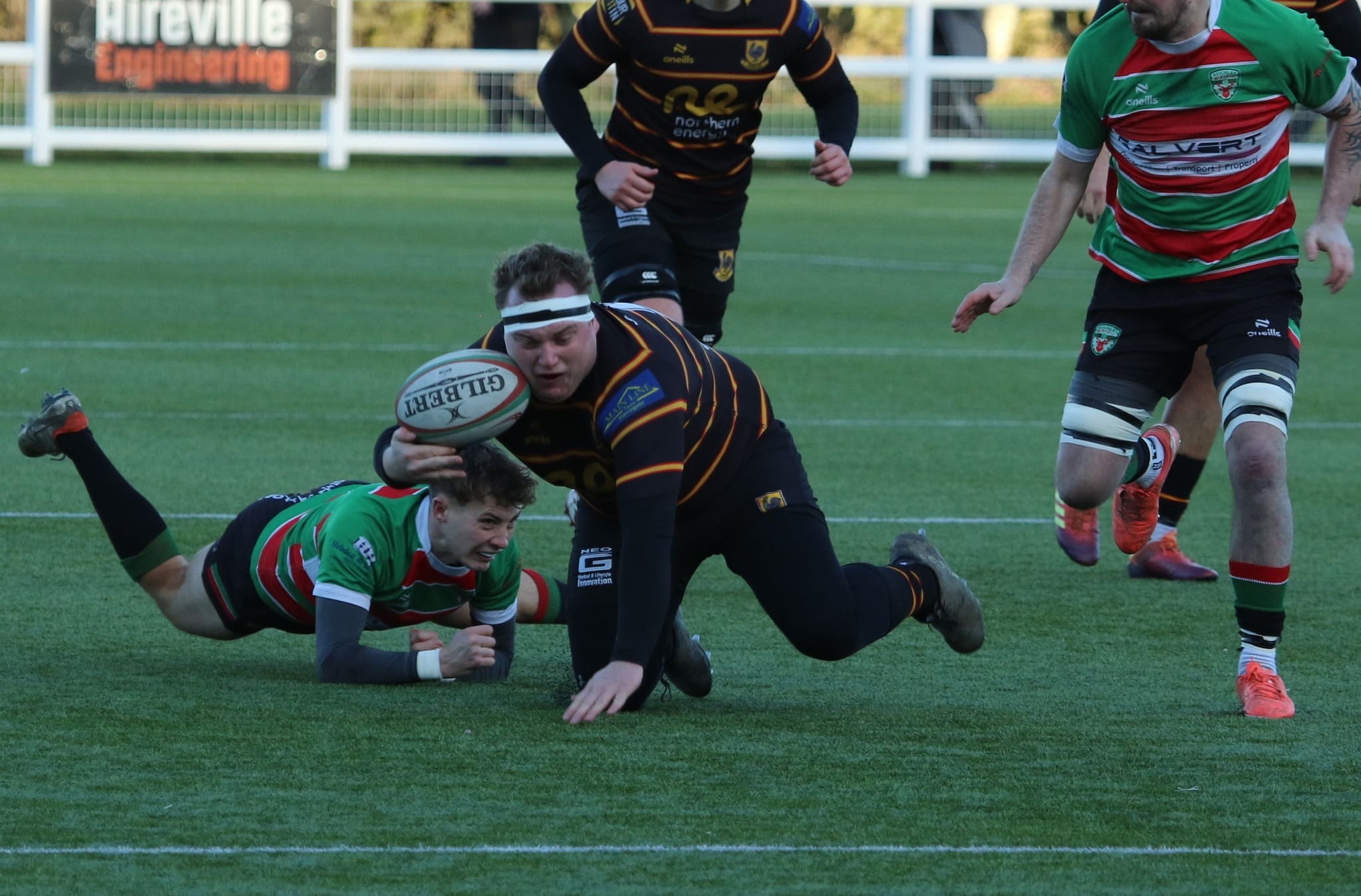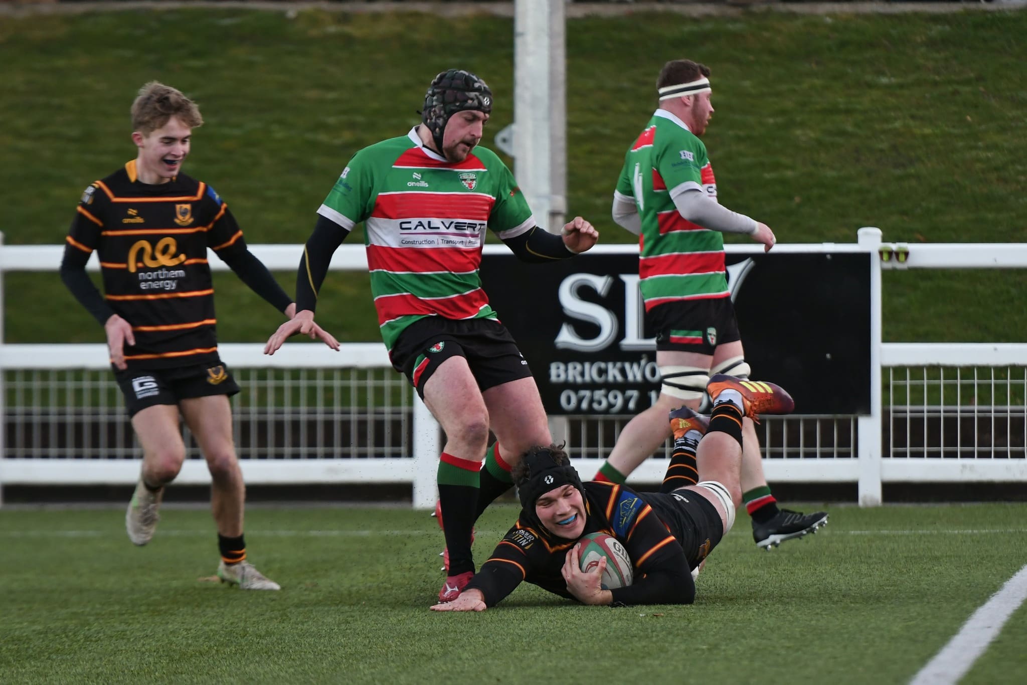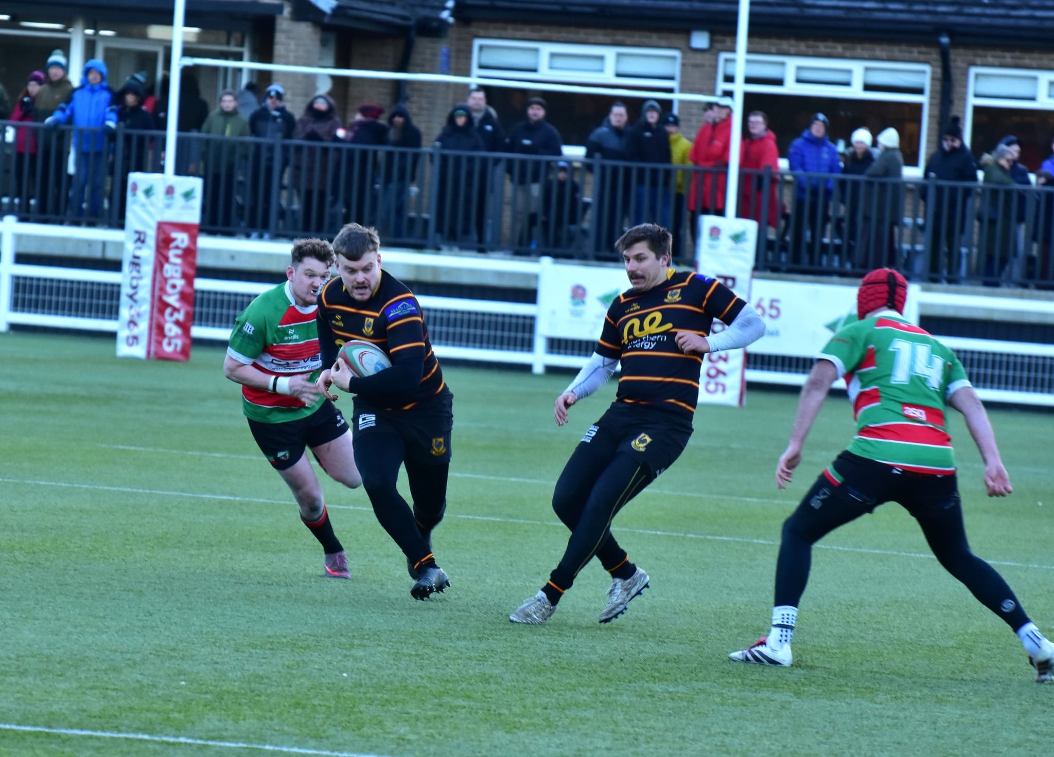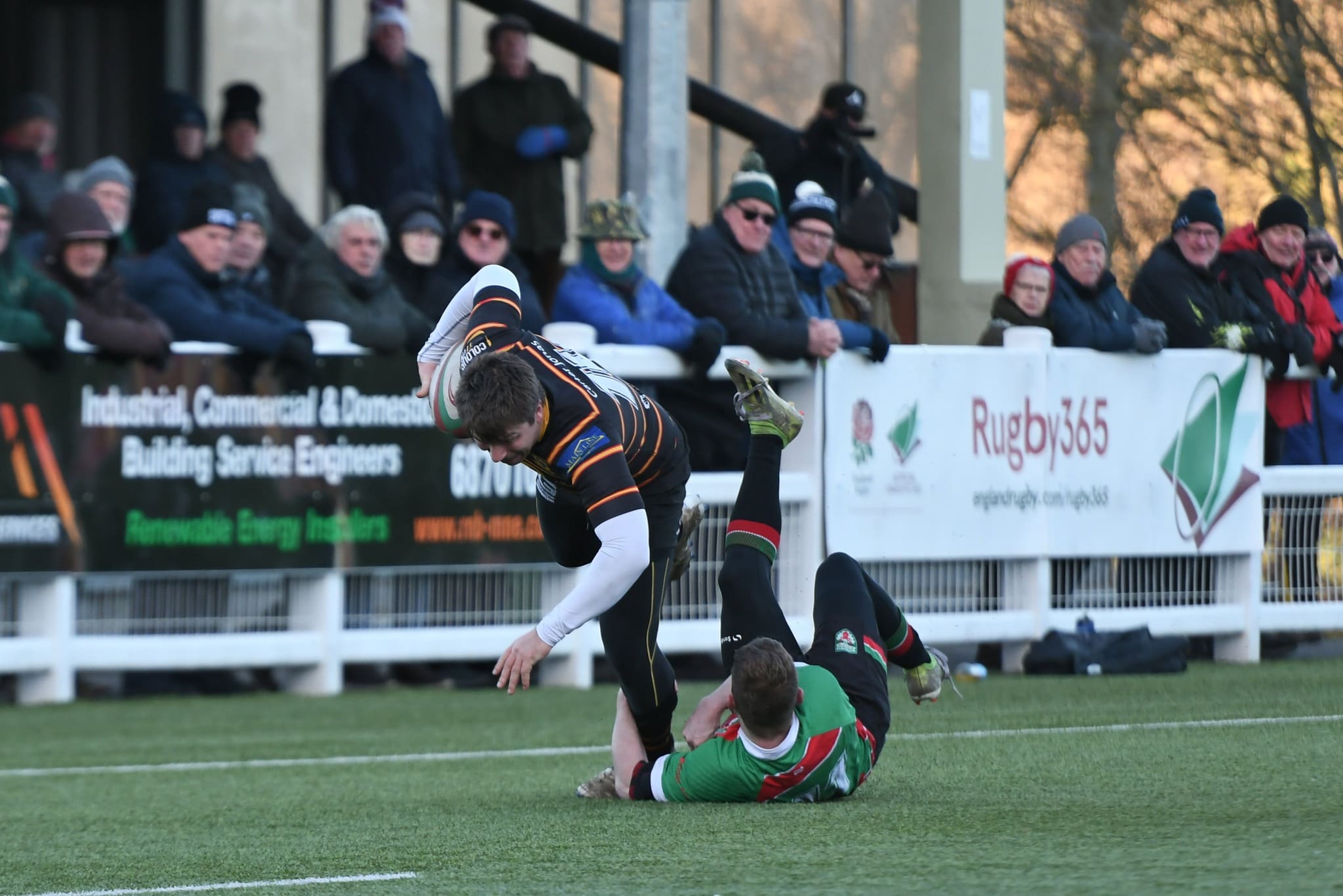 Harrogate Pythons visited a very cold Keighley for the first fixture between the two sides this season. Keighley’s home advantage on their 3G pitch has plagued The Pythons over the past 3 seasons but given recent form The Pythons went into the fixture with some confidence. That confidence was rewarded as The Pythons controlled the game up to 10 minutes into the second half leading 10-19. Keighley came back strongly scoring 5 unanswered tries to win the fixture 43-19.Marcus Fotherby took the first line out giving runners Harry Butler and George Booth an early opportunity to break the home defence. Freddie Abrahams controls play from scrum half and keeps the game moving closer to the home line. Butler breaks wide but loses the ball in the tackle 2m out. Keighley clear their lines and mount their own attack. Solid tackling from Ben Pryor and Rhys Cory in mid field hold the attack but the referee spots an infringement at the breakdown, Keighley take the lead 3-0 on 10 mins.Jack Whiting kicks ahead and the phases begin again. Abrahams puts Harry Jackson into space but he’s bundled into touch on half way. Whiting breaks again and carries strongly into the home 22. Booth and Fotherby continue the push and win a penalty on the home 5m line. Abrahams waits for an injured player to move from the mark, taps to himself and spots Joel Misseldine on a great line, pops him the ball and he breaks through 2 tacklers to score, Pryor adds the extras, 3-7 on 15 mins.Will Milnes is solid in defence and closes down the area around the breakdown. Some quick hands wide give the home team space for their pacey winger to dart over, 10-7 0n 25 mins. A high kick is gathered by Jackson on halfway and a ruck forms. Natsuki Barclay spots Hugh Tatlow running across to the blind side and whips a pass out to him. Tatlow steps two players and runs through the home full back to score from 50m. Pryor adds the 2, 10-14 half time.