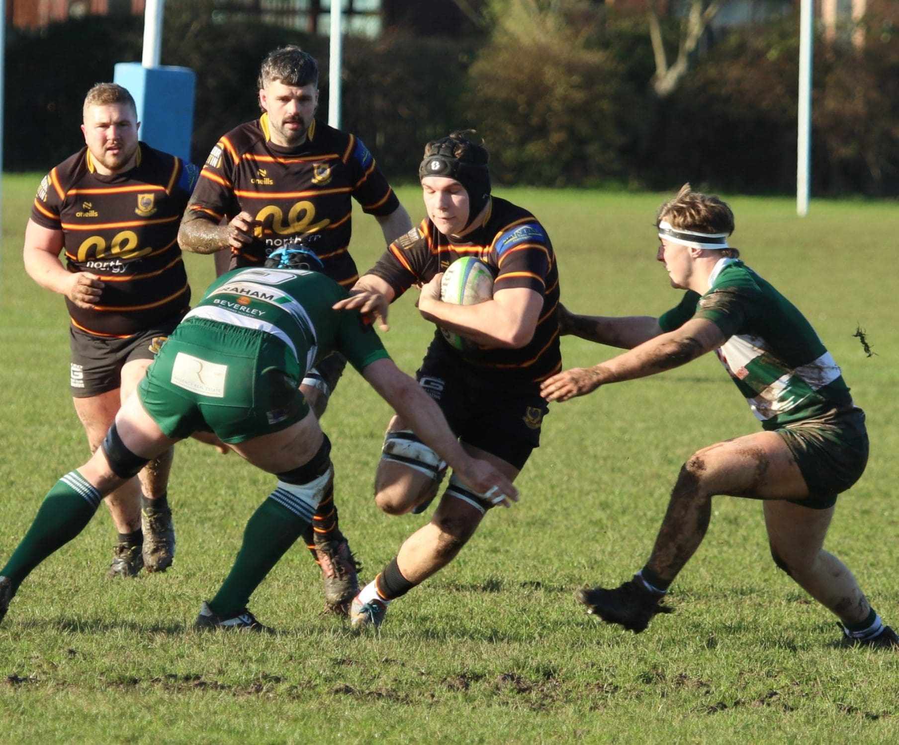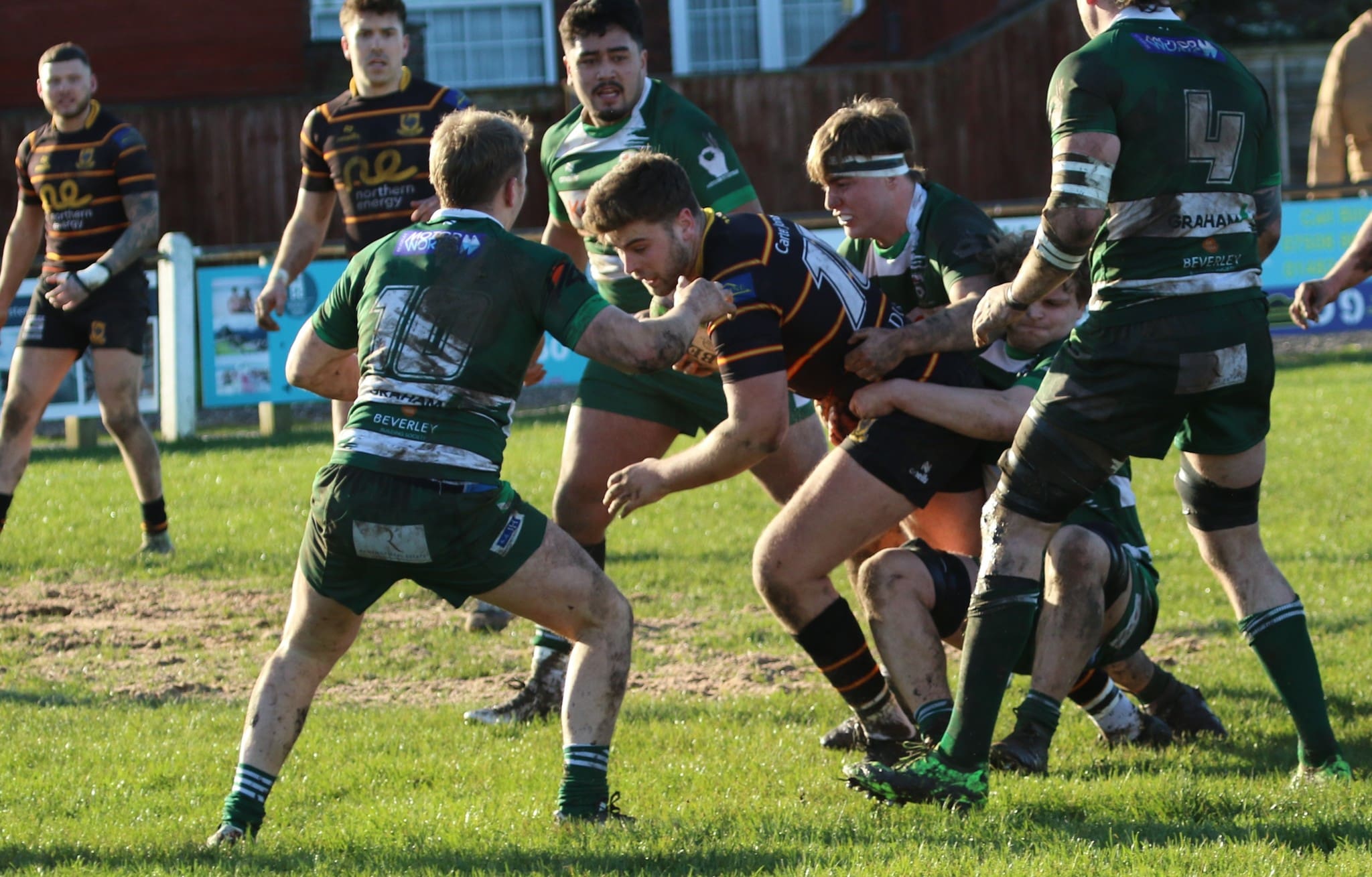 Harrogate Pythons 1st XV travelled to a sunny Beverley following an early morning pitch inspection.  Beverley score 3 early tries to lead 17-0, Pythons fight back to 17-17 with the game finishing 27-22.  Pythons secure 2 valuable league points advancing them one position to 7th. Within 25 minutes of the start Pythons were down 3 tries.  Beverley took advantage of the away team’s seemingly lack of concentration and piled on the pressure.  The home line was threatened a number of times with some hard runs from Harry Butler and George Booth but strong defence from a determined Beverley kept them at bay.  Following pressure in the home 22, Max Sharp burst through the opposition to open The Python’s account, Ben Pryor adding the 2, 17-7 on 30 mins.  Quickly back on the offensive, Harry Smith got his back line creating chances in the 22.  Harry Jackson was pulled down 10m out but managed an off load to returning Bailey Bromberg to use his speed, strength and determination to score in the corner, 17-12 – half time.