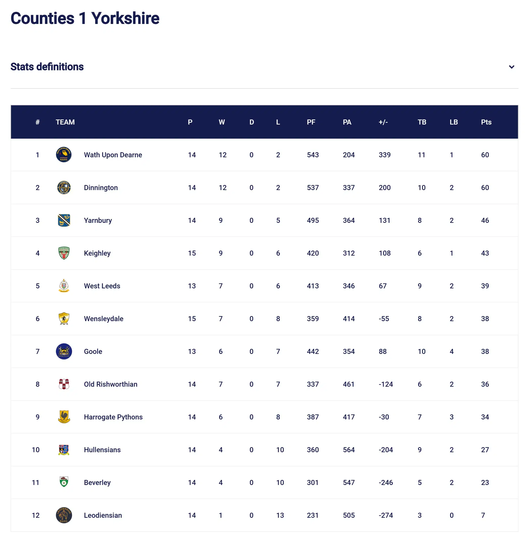 RFU Northern Division Counties 1 Yorkshire
