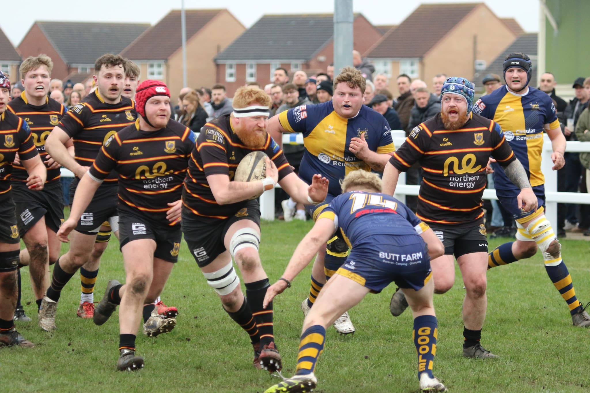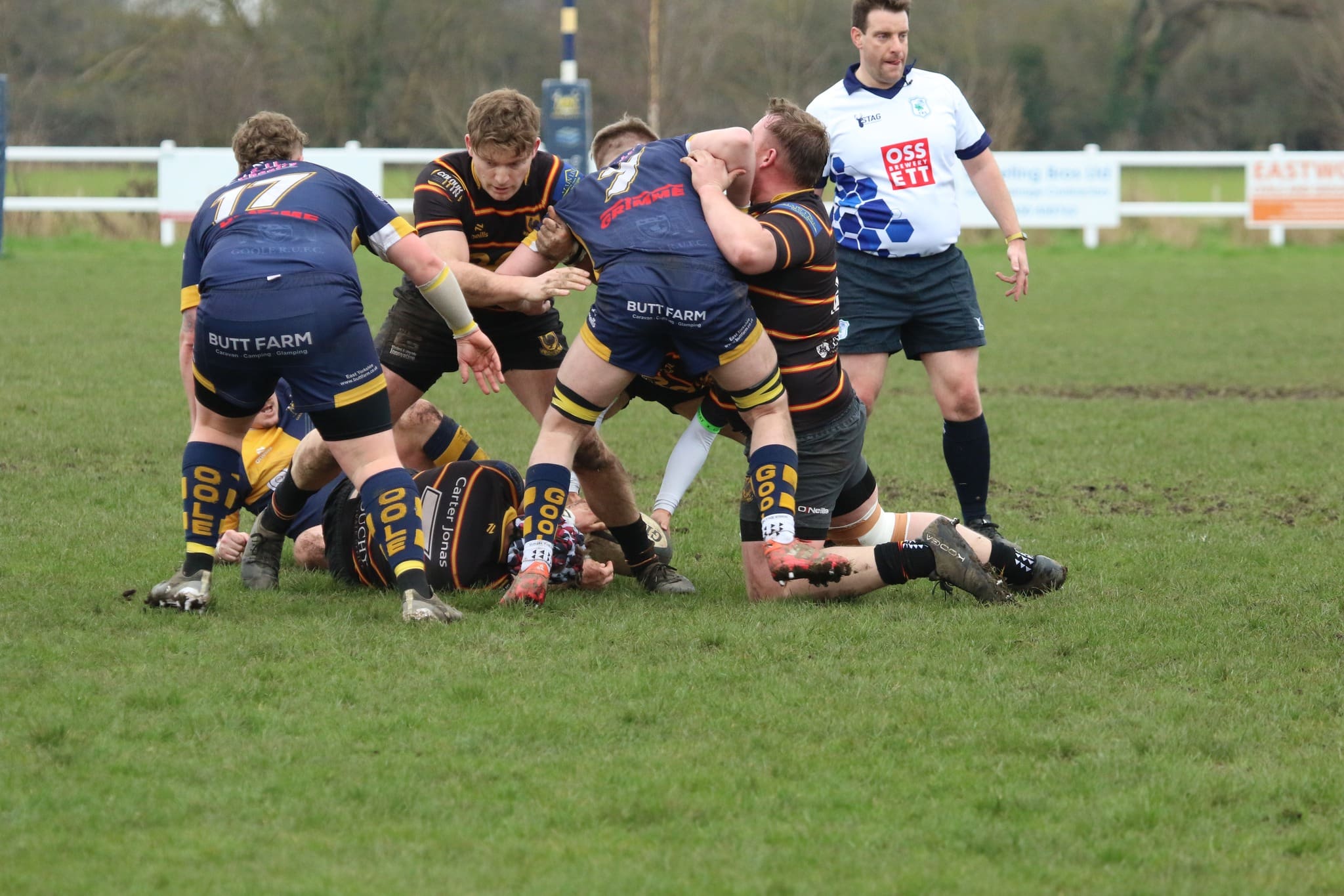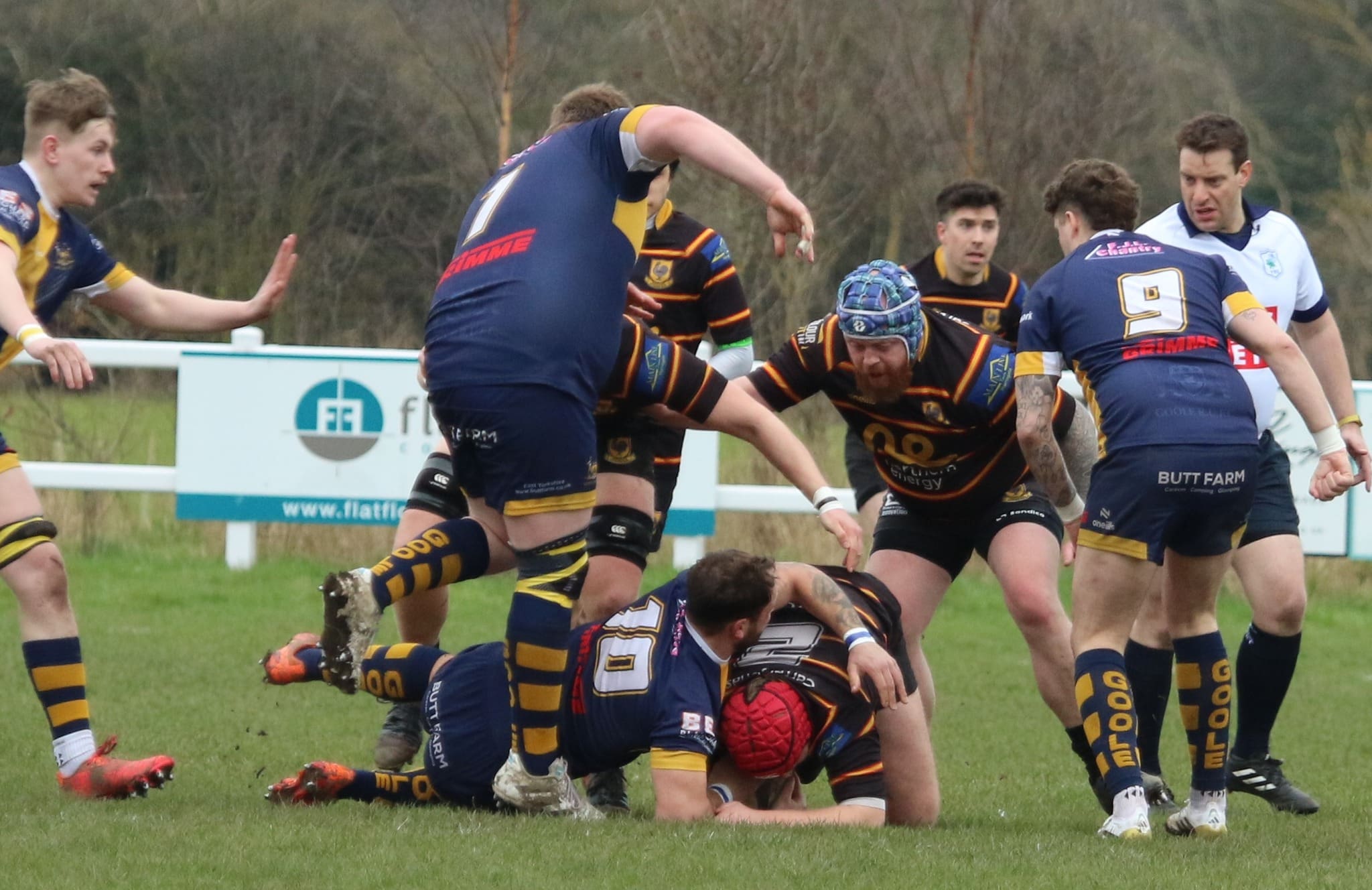 Harrogate Pythons travelled to Goole for the first time since 2017 for their second fixture this season.  Taking a narrow in 28-21 in late November Goole managed to take their home win 38-26. The early exchanges were evenly matched with Harry Butler and Harry Smith pushing the phases into the Goole half.  A penalty at the breakdown for the home side, resulted in the first of 8 yellow cards issued by the referee – 5 to The Pythons and 3 to Goole.  Goole score from the resulting lineout, 7-0 after 15mins.  Returning Sam Beagrie showed determination with his runs out wide.  Will Milnes, George Booth and Butler muscled their way through mid field pressurising the home side into conceding a breakdown penalty.  Smith hits the corner, Marcus Fotherby takes the lineout but a technical error gives Goole the chance to clear their line.  Rhys Cory links well with Harry Brayshaw who kicks through.  The home full back does well to gather the bouncing ball and clears to half way.  Goole score a penalty and converted try taking the points tally to 17-0 after 30 mins. Fotherby secures line out possession on half way and Natsuki Barclay gets his back line moving.  Rhys Cory breaks the line and feeds centre partner  Ben Pryor who delicately chips into the corner.  Goole are penalised receiving a yellow card, Barclay taps and goes, Goole receive another yellow card.  Tap and go again, Smith takes the ball into contact and drives over from 5m, Pryor adds the 2, 17-7 after 35mins. Smith kicks out of hand again to the 5m line.  Will Milnes takes the ball and The Pythons pack set up a driving maul.  Joel Misseldine spots a gap and races over to score, 17-12 half time.