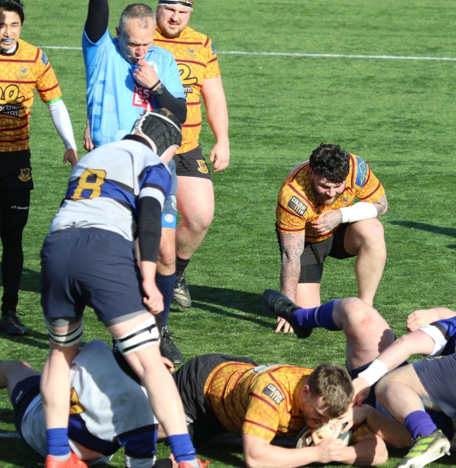 Harrogate Pythons visited 3rd placed Yarnbury RFC for their away fixture on Yarnbury’s 4G pitch.  Having beaten Yarnbury at home in early December, John Liley’s men were looking to do the same and delivered their first win, 21-24  after 5 successive defeats. The first 30 mins of the game belonged to The Pythons.  Controlling both territory and possession the home side, other than defending, couldn’t make impact on the game.  The Pythons chose to keep ball in hand and created some well worked chances.  Harry Brayshaw used his pace to set up the first attack with Yarnbury conceding the first of a string off desperate defending penalties.  Harry Smith kicked the ball to 5m, Hugh Tatlow takes the line out and the drive for the line begins.  Harry Butler is held up just short.  Yarnbury clear their lines and take possession around half way.  Fierce tackling from Rhys Cory and Sam Beagrie and the home side concede a penalty on half way.  Smith drills the ball to the home 22m line.  Marcus Fotherby takes the line out and the drive begins once again.  Natsuki Barclay brings his back line in with Ollie Ward causing the home side problems in mid field.  Another penalty and Smith hits the 5m line.  Tatlow secures the ball , Butler peels off the side of the maul and is bundled into touch on the line.  The referee brings play back for an earlier infringement, Misseldine taps and goes, halted 2m out.   Butler picks the ball and drives but is held up over the line.  Goal line drop out and The Pythons are back again with Smith and Ward 10m out.  Tatlow continues the drive forms a ruck but the ref spots a fumble at the base.  Yarnbury scrum and they clear to half way.Yarnbury are forced to show why they’re so high in the league – an intense period of defence as Barclay sets up phase after phase with Beagrie, Smith and Ward moving the ball quickly across the field.  Another penalty, the home side receives an inevitable yellow card.  Tatlow secures the line out, Barclay uses width to Ben Pryor who shrugs off a high tackle, he drives for the line, Butler takes over but is halted just short.  The ref takes play back for the high tackle, Pryor taps the ball and barges over from 5m, he kicks the conversion, 0-7 on 35 mins.