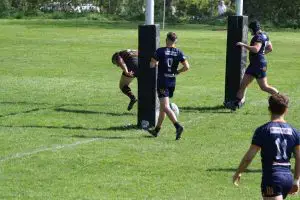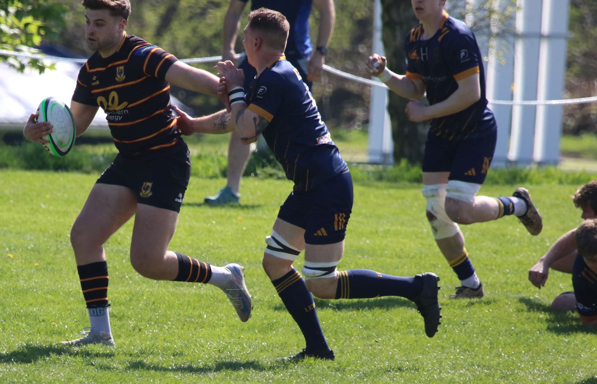 Harrogate Pythons travelled to Leodiensian for the last league game of the season.  In a high scoring game The Pythons came away winners 33 – 46 leaving them in 9th place in the league, whilst Leodiensian are relegated. The Pythons started the stronger of the 2 sides winning a breakdown penalty on half way.  Connor Spence was quick to react tapping and carrying through to the home 22.  He slotted through a grubber kick for Harry Brayshaw, the bounce was unkind for Brayshaw but supporting Natsuki Barclay was on hand to touch down, 0-5 after 2 mins. The Pythons turn the ball over on half way and Barclay gets his backline moving through Ben Pryor and Harry Smith.  The ref spots an infringement at the breakdown and it’s Leo’s turn to tap and go.  Some superb defending from Will Milnes and Marcus Fotherby cause Leos to knock on.  Scrum on half way and The Pythons set the phases again using Mattie Tuff, Will Milnes and Jordan Payne.  Leos concede a penalty, are penalised a further 10m for offering some advice to the ref and Smith kicks to 10m.  Secure line out ball and the drive begins.  The ball becomes lose and Pryor is quick to react stepping over to score, 0-10 on 10 mins. Leos get back into the game and lead 14-10 within minutes.  A turn over in mid field puts The Pythons back on the offensive.  Leos buckle under pressure and conceded another off side penalty.  Smith hits the 22, secure line out ball gets the phases going again edging closer to the home line.  Smith and Rhys Cory advance the gain line closer and Pryor spots a gap to score under the posts, 14-17 on 30 mins.  Leos react positively and take the lead once again, 21-17.  The Pythons win a scrum on the home 10m line.  Hugh Tatlow picks from the base and makes ground, feeds Smith who links well with his centre partner Cory to crash over in the corner, 21-22 half time.